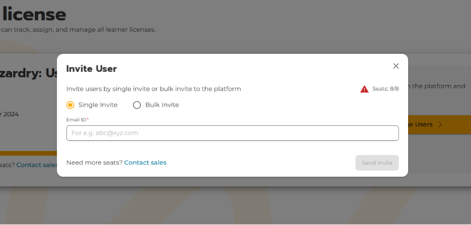 To assign: Click Manage Users > select Single Invite or Bulk Invite